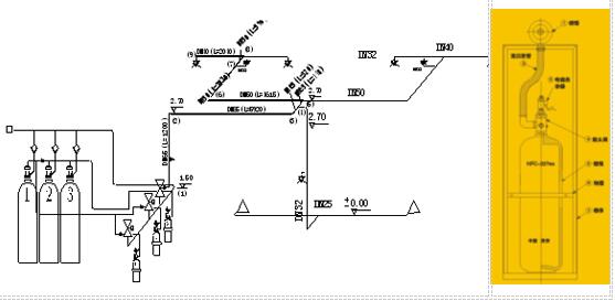 機房滅火目前采用的滅火劑大多數還是選用七氟丙烷或混合氣體,二氧化碳肯定是不合適,因為溫降會對發熱機器造成損壞。七氟丙烷在機房滅火中可以采用有管網全淹沒滅火形式和無管網全淹沒滅火形式,兩種形式可在具體工程種進行投資比較后定出一種方式,問題不是很大;混合氣體滅火系統在機房滅火中應用也非常多,大多數采用有管網滅火形式,因為同樣大小的機房所用高壓瓶數量七氟丙烷要比混合氣體少一半左右,機房面積一般都很小,混合氣體做無管網形式時無管網箱體數量比較多,再者,啟動電流就是個問題。
